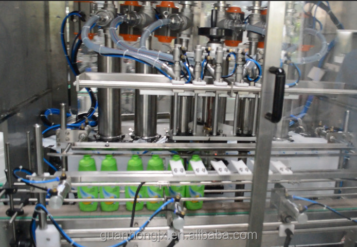 Aire y electricidad, pantalla táctil integrada y control del sistema PLC, alto grado de automatización, fácil de operar, alta precisión de llenado.Y cada cabeza de llenado se puede controlar individualmente para ajustar la precisión de llenado, aumentando la vida útil y