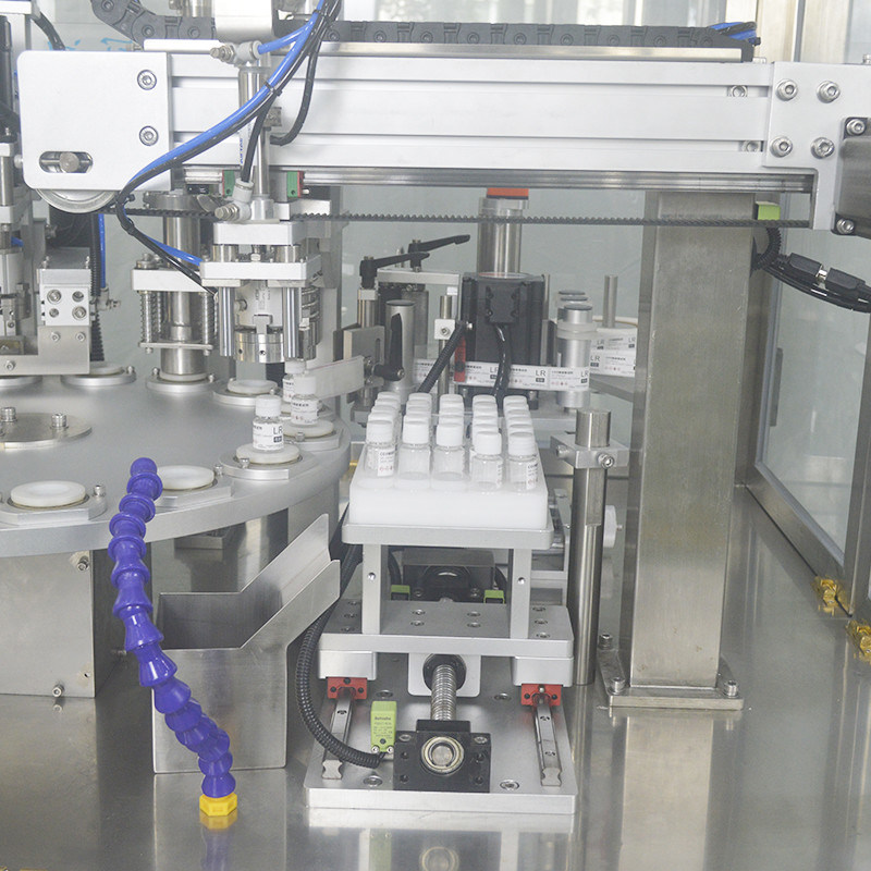 Esta máquina es una nueva línea de producción para el llenado, tapado y etiquetado de botellas pequeñas.La fábrica de estructura razonable y compacto utilizado principalmente en el laboratorio o pequeños y medianos lotes de llenado de líquido tapón etiquetadoEsta máquina está hecha de material de acero inoxidable por encima de 304 #, que es muy conveniente para limpiar, rentable y de alta eficiencia de producción.Máquina de etiquetado en productos químicos diarios, las industrias farmacéuticas y alimentarias.